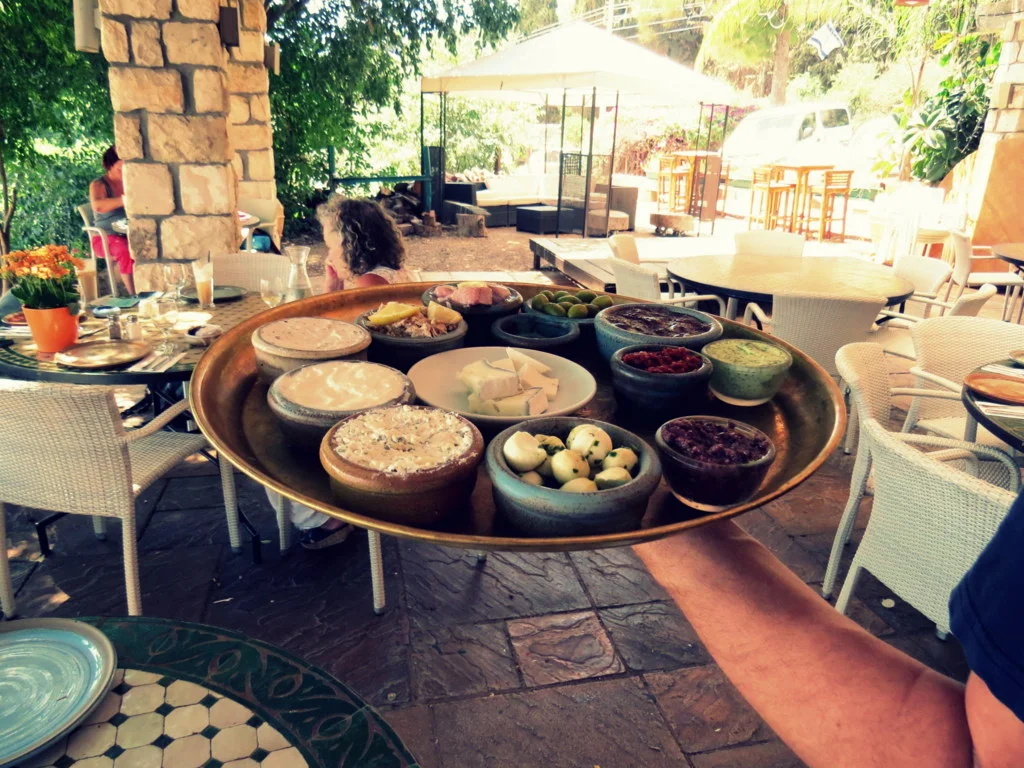 The main dining space is open, a covered balcony set on a ridge looking out over the Galilee. It’s so inviting, you feel you could stay there for hours, drinking coffee, drinking in the view, perhaps another coffee, now something to eat…