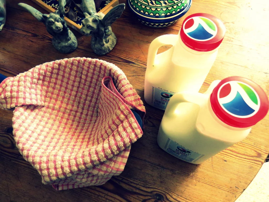 - Gather the towel up into a ball, making sure you are holding all the yoghurt inside the towel. Warning - be careful here! If you double the quantities, you will need a bigger towel. Leave it hanging for 12- 15 hours. And that’s it!