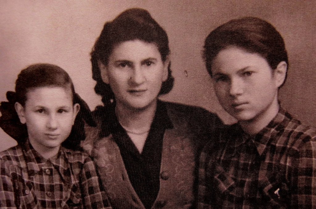 Fela with her daughters Judy and Tosia. Landsberg, 1948