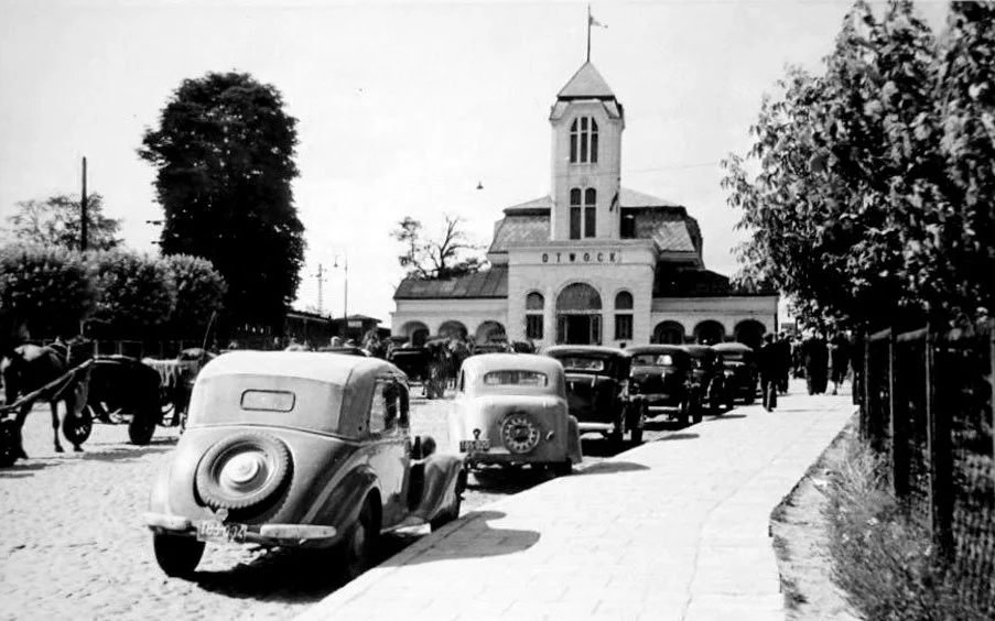 Otwock railway station, 1930's. It still looks the same today - minus the period cars, of course.