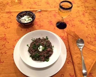 “True. We ate big bowls with warm olive bread, a nice Spanish wine and some tart Greek yogurt. Delish.”